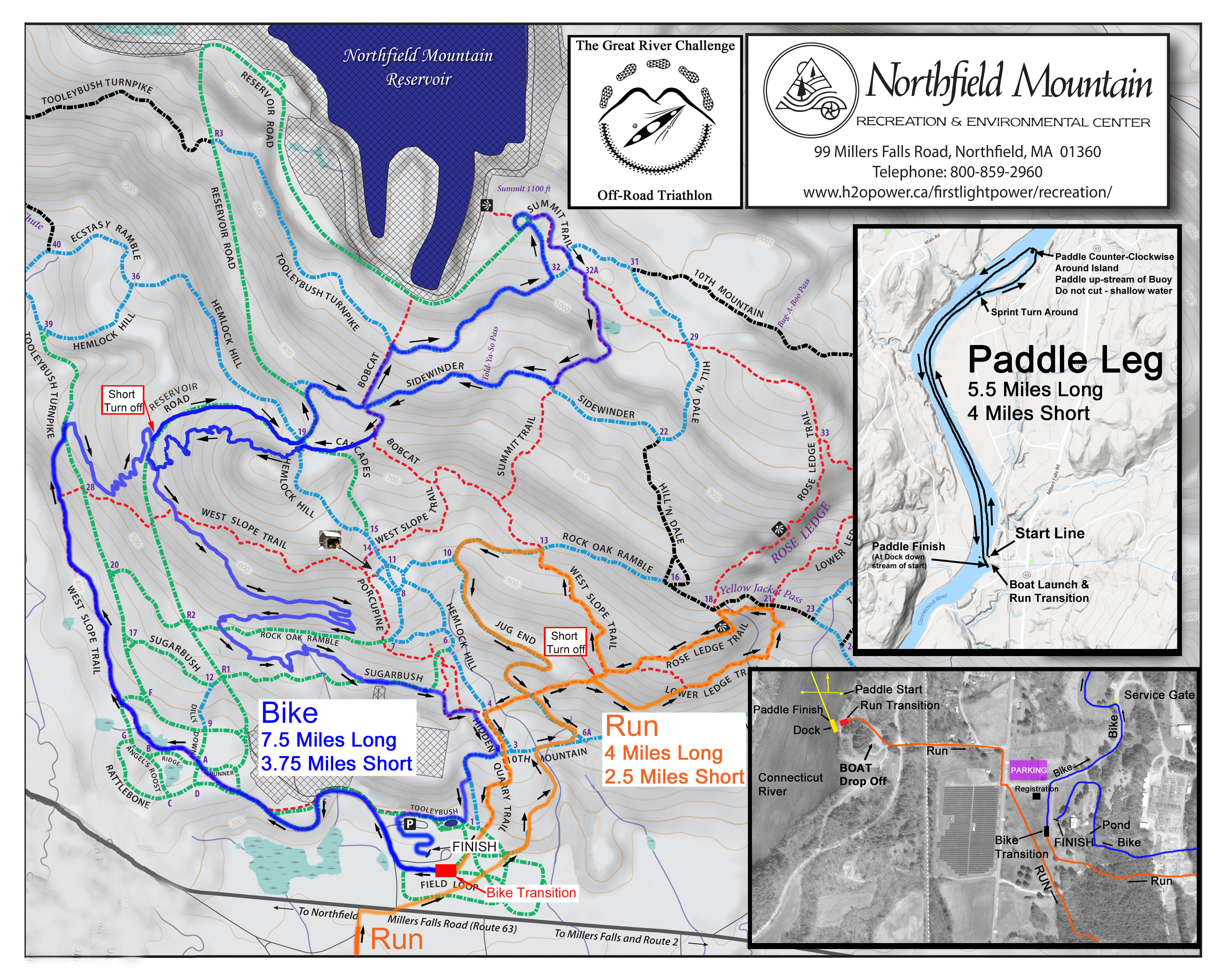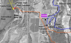 Map below denotes the running and biking course in the woods. see map for short course cut-offs